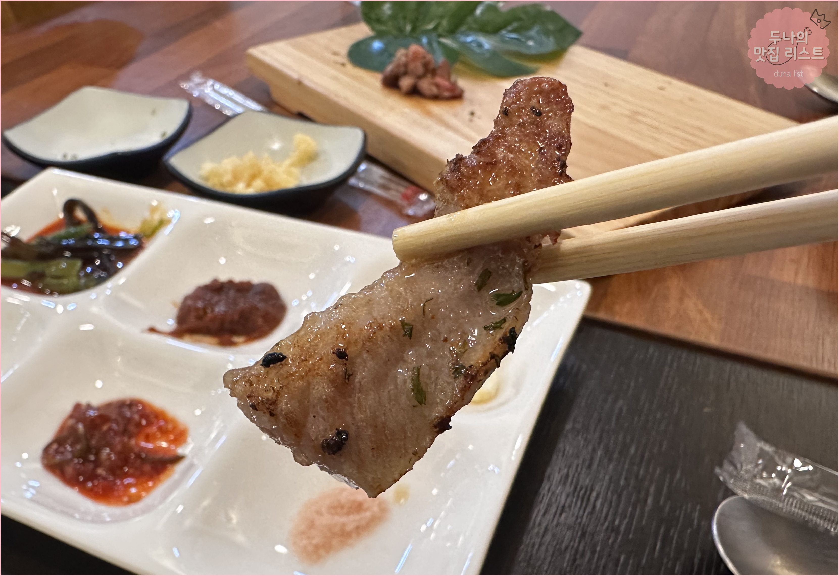 맛있는 돼지고기의 기름 맛이 쫙 퍼지면서